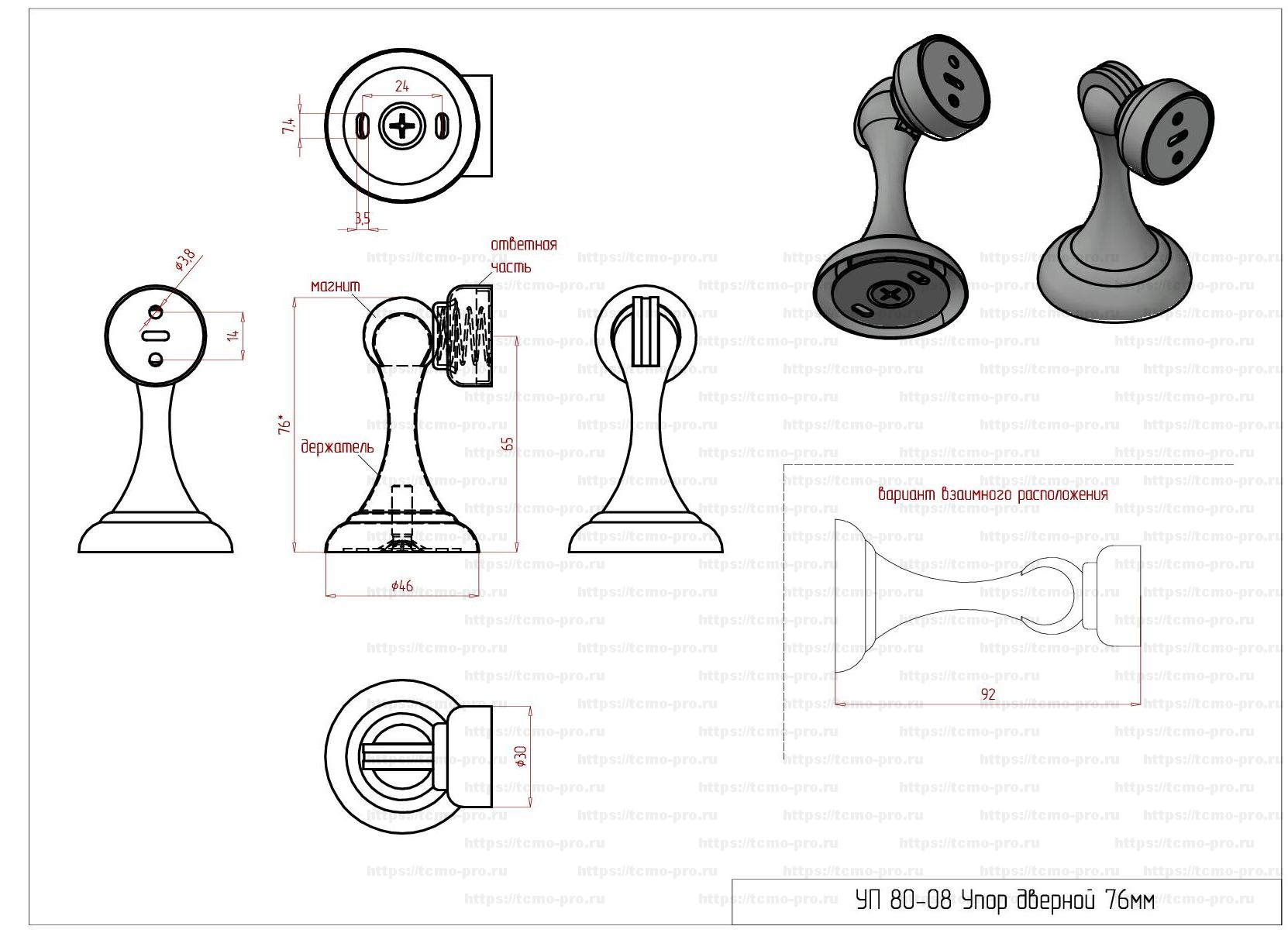 УП 80-08 Упор дверной 76мм