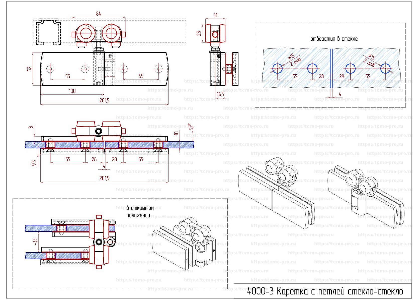 SND4000-3 Каретка с петлей стекло-стекло