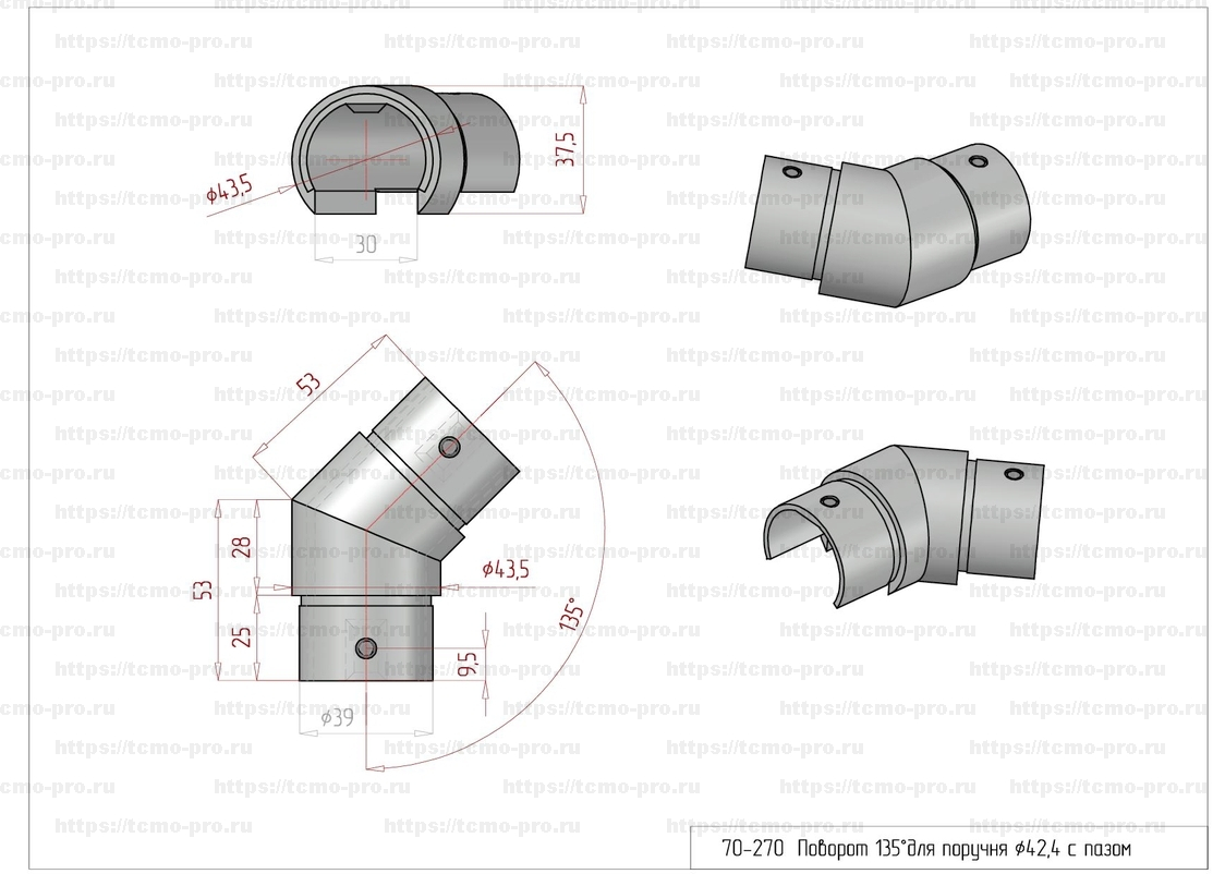 70-270 Соединитель для поручня с пазом d42.4 мм