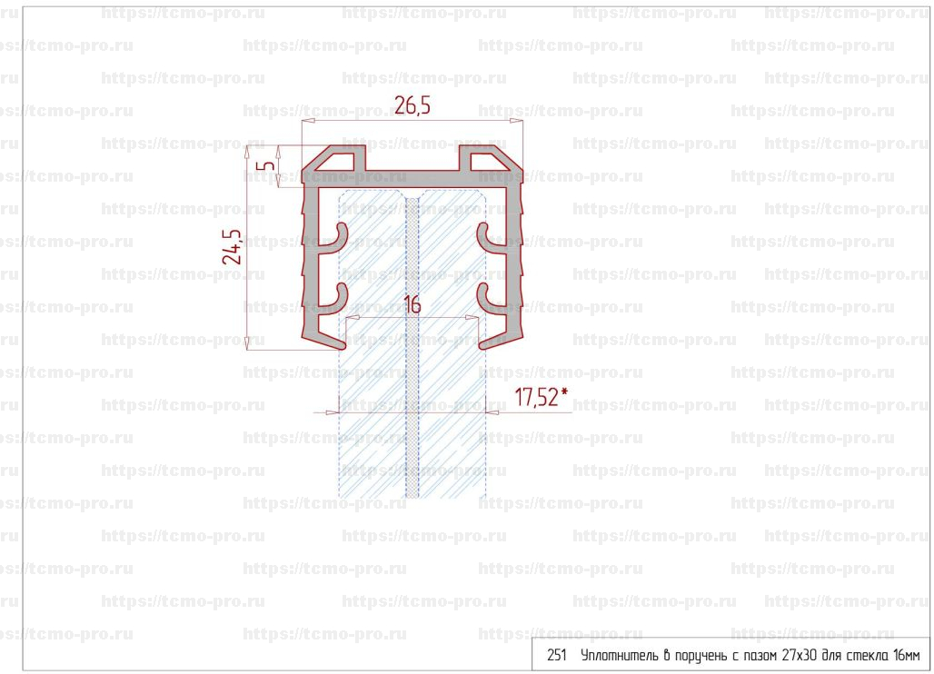251 Уплотнитель для стекла 16 мм для паза 27х27