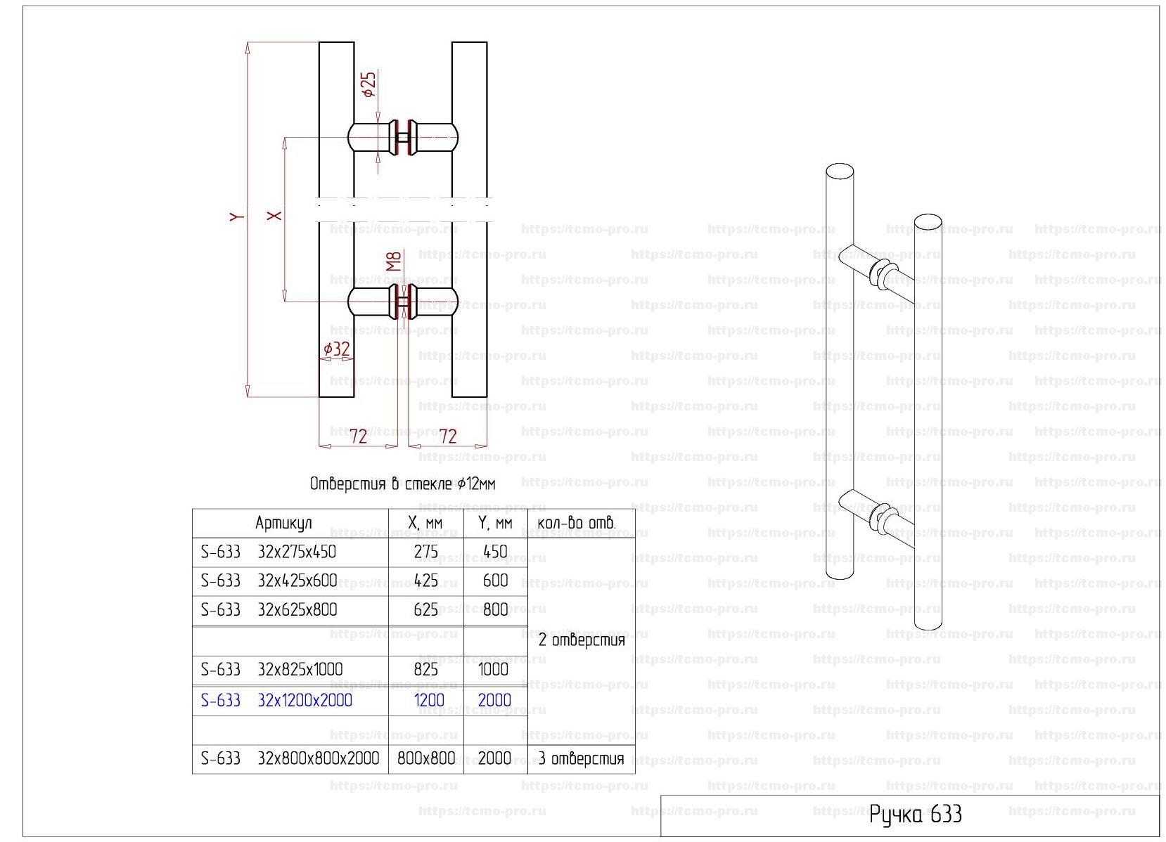 | Особенности | 3 отверстия Ø12 мм |