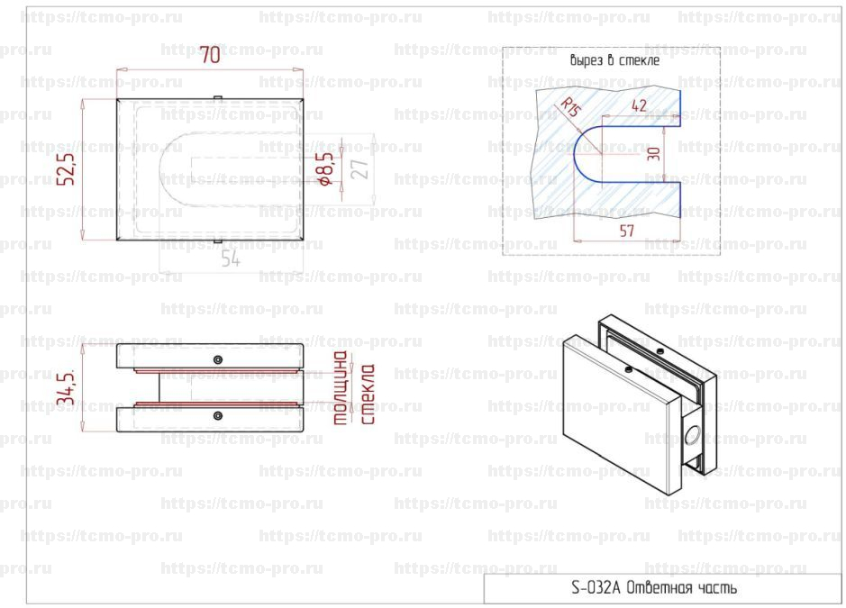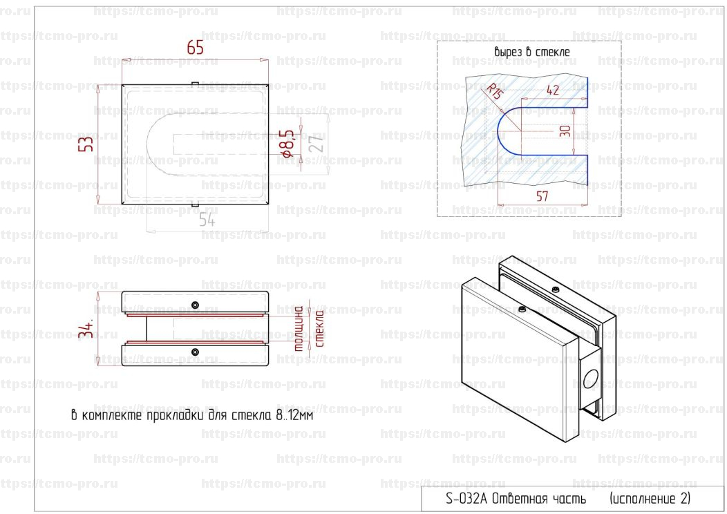 | Особенности | Ответные части под стекло 12мм, для стекла 10мм требуется дополнительная прокладка. |