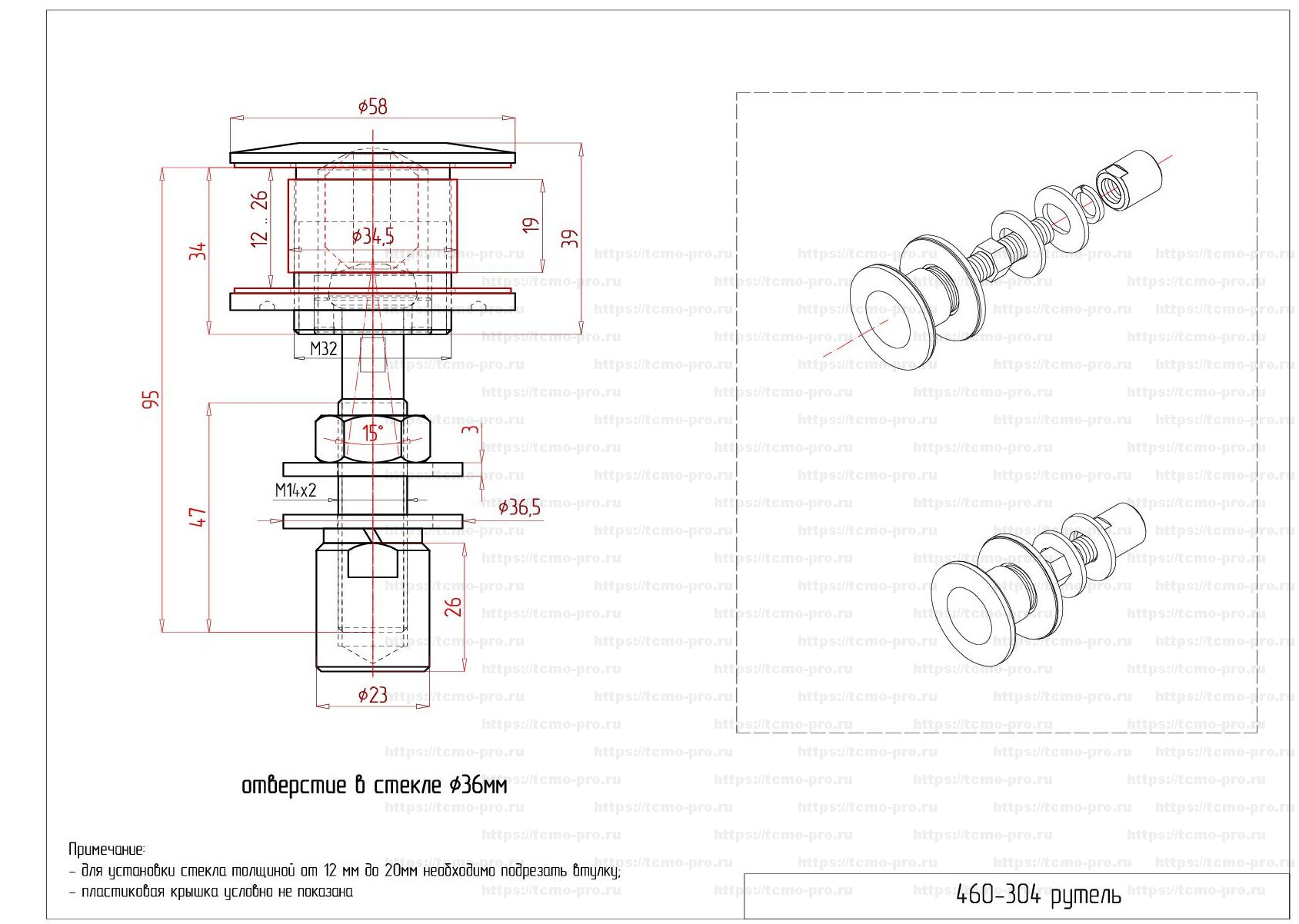 | Особенности | Внимание!!! Установленная пластиковая втулка в комплекте соответствует под стекло 20мм, для установки стекла меньшей толщины необходима подрезка втулки. |