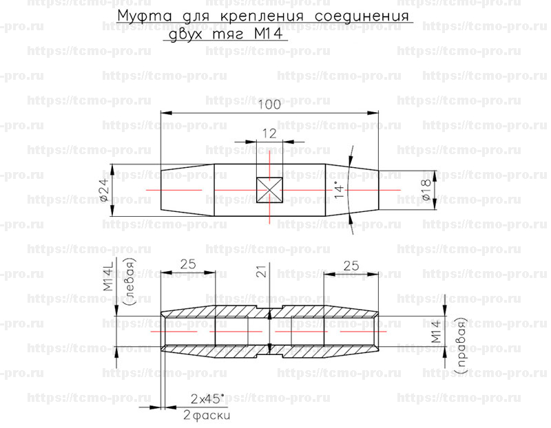 Муфта предназначена для удлинения тяг с резьбой М14 и М14,левой при монтаже стеклянных козырьков.