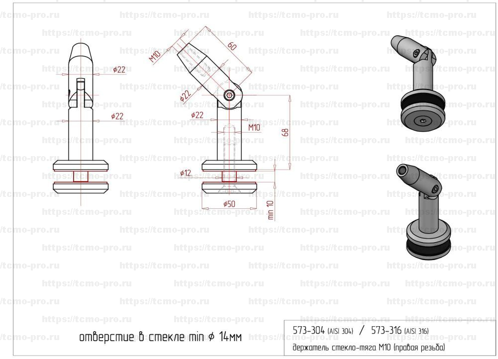 SND573-316 Стеклодержатель (тяга-стекло) м10R