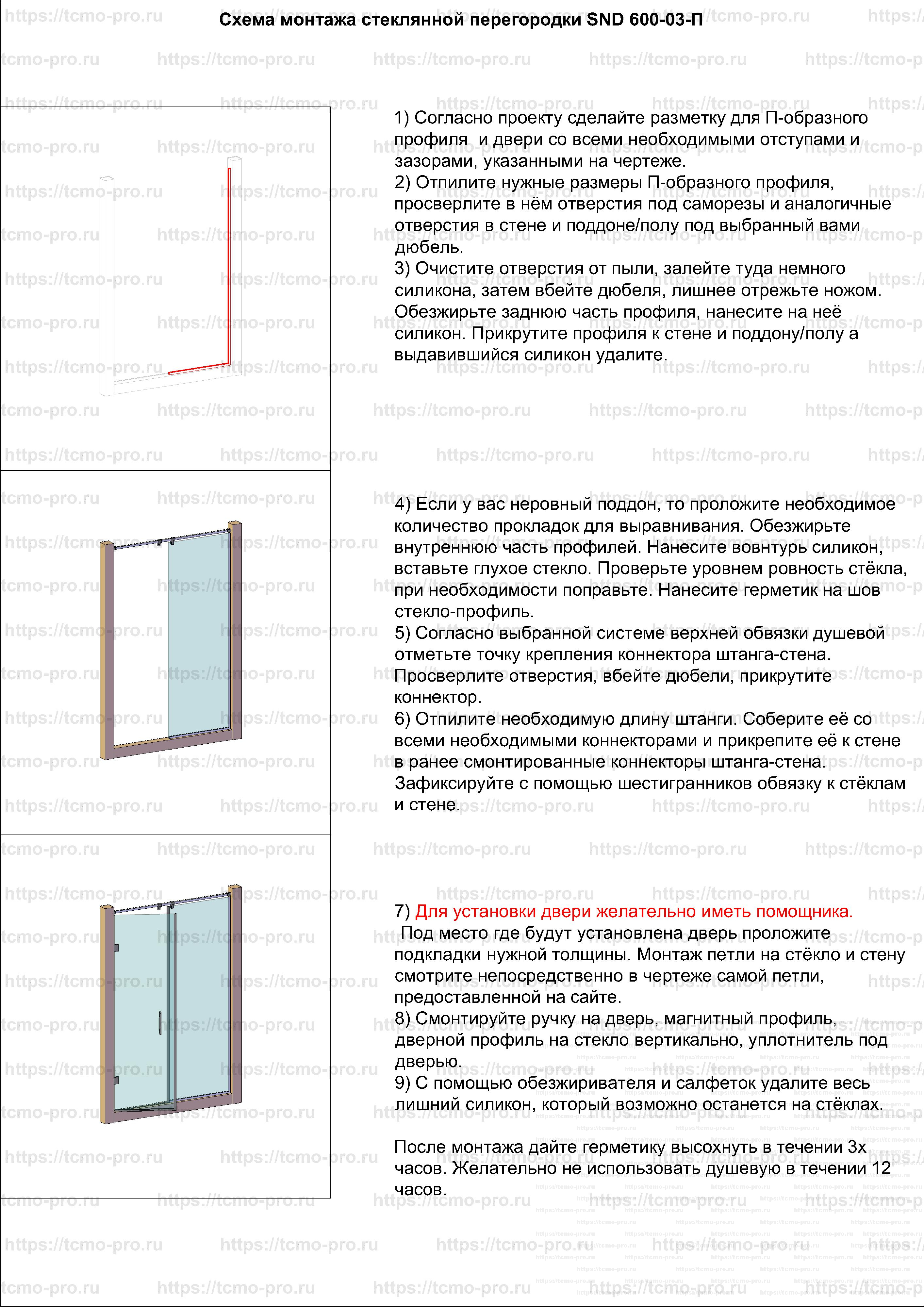 После монтажа дайте герметику высохнуть в течении 3х часов. Желательно не использовать душевую в течении 12 часов.