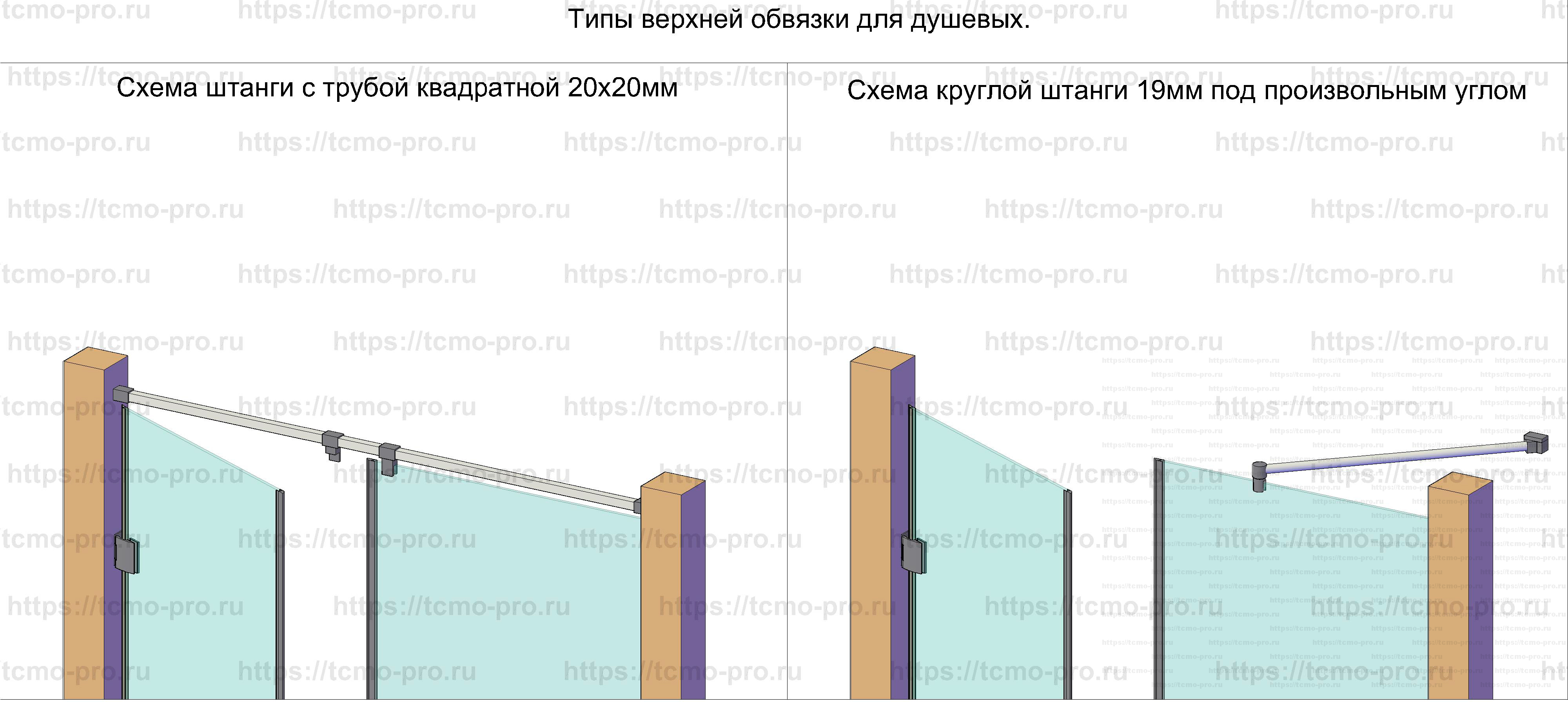 - Трубы (штанги верхней обвязки/треки) для душевых кабин