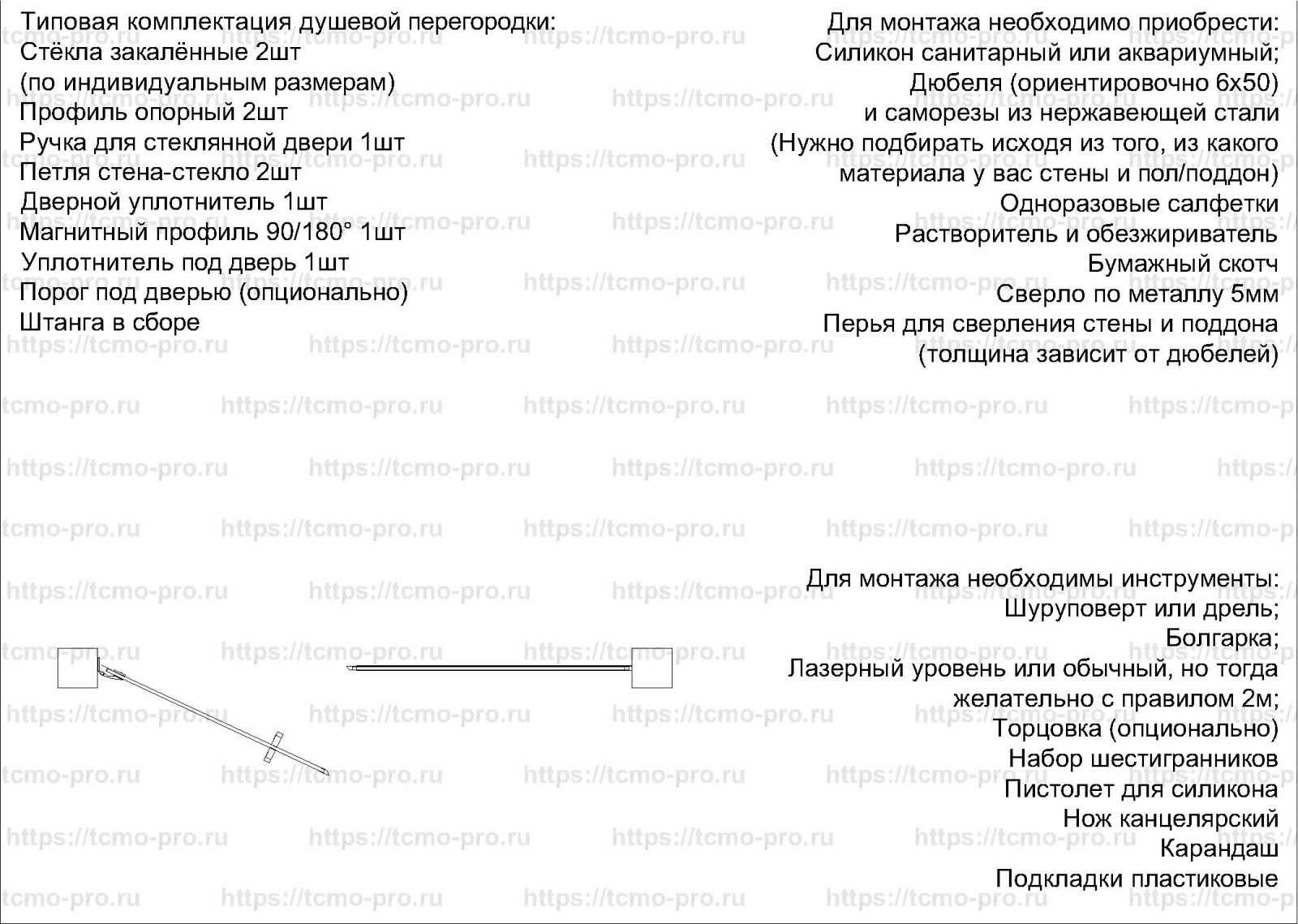 | Доп Информация | Комплект душевой кабины из стекла по размерам заказчика производится под заказ. |