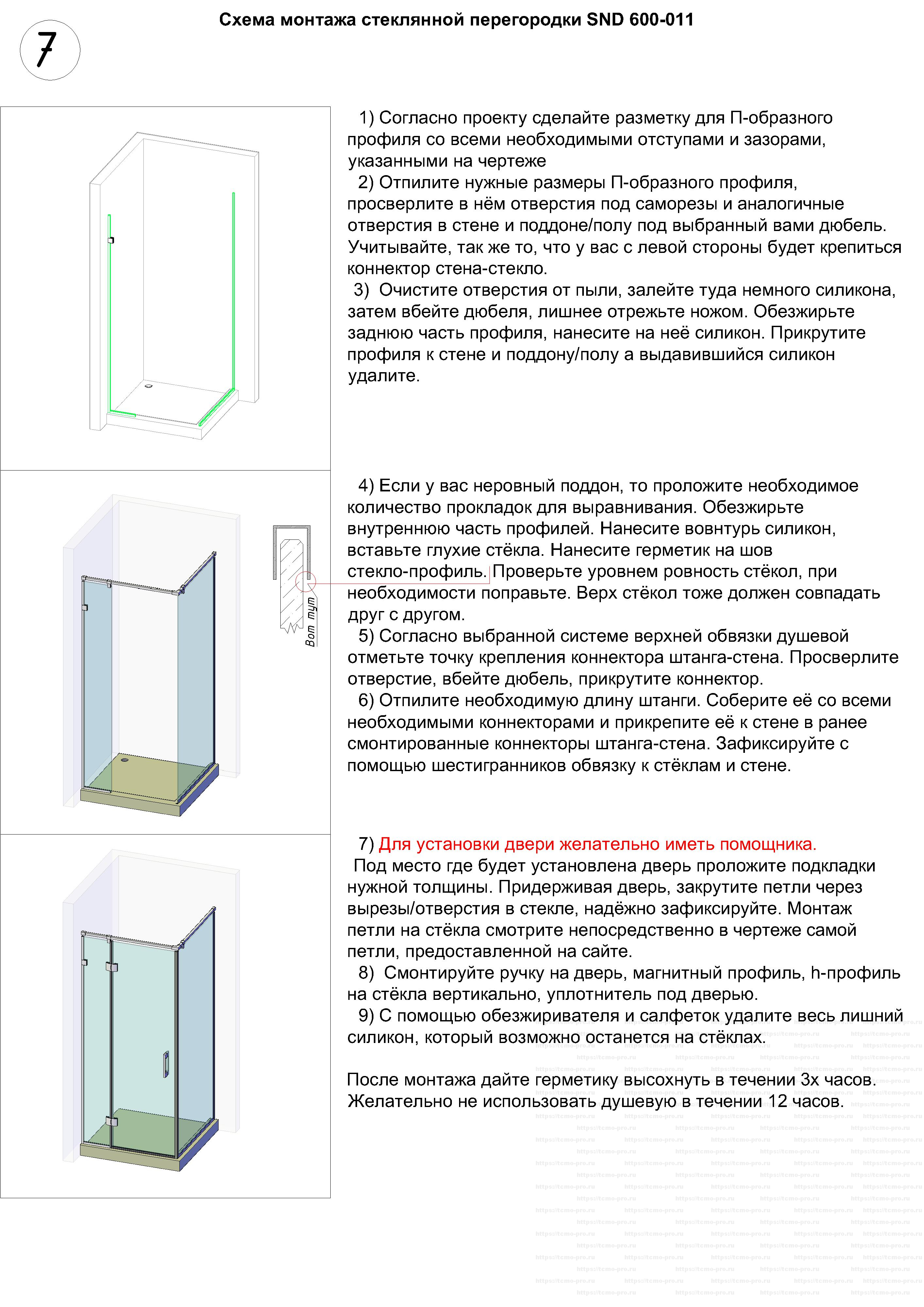 После монтажа дайте герметику высохнуть в течении 3х часов. Желательно не использовать душевую в течении 12 часов.