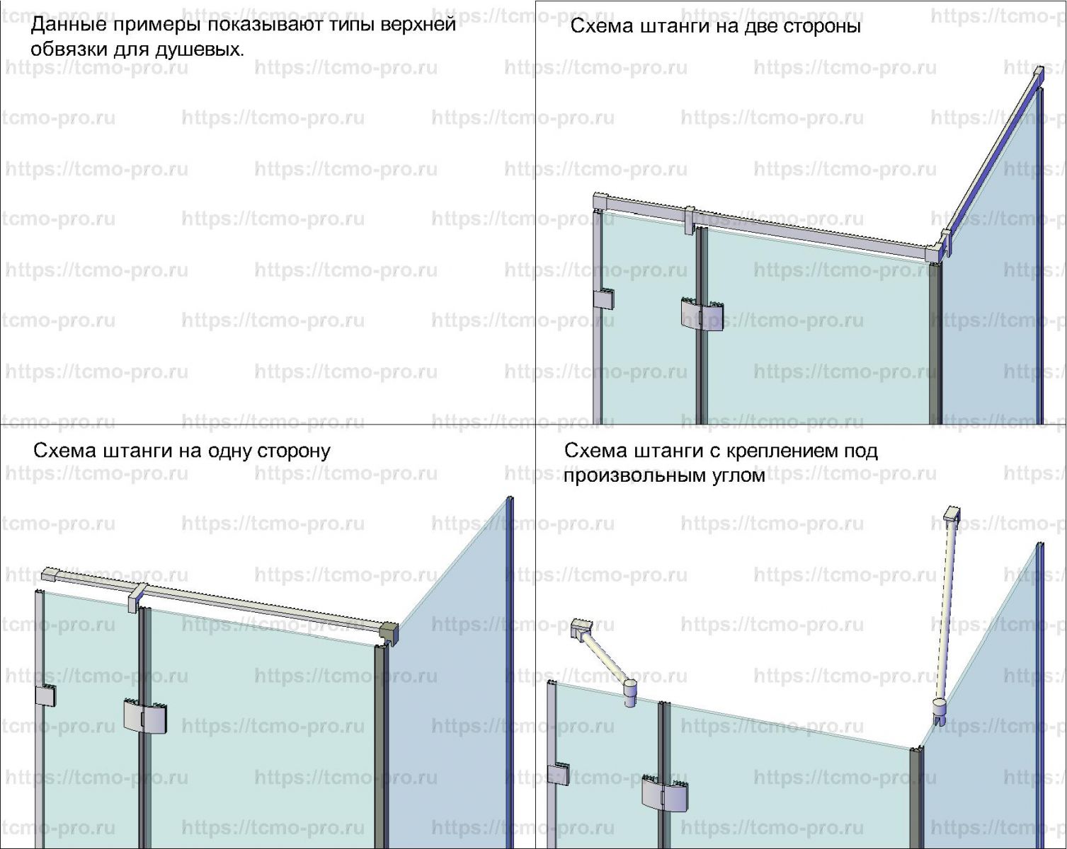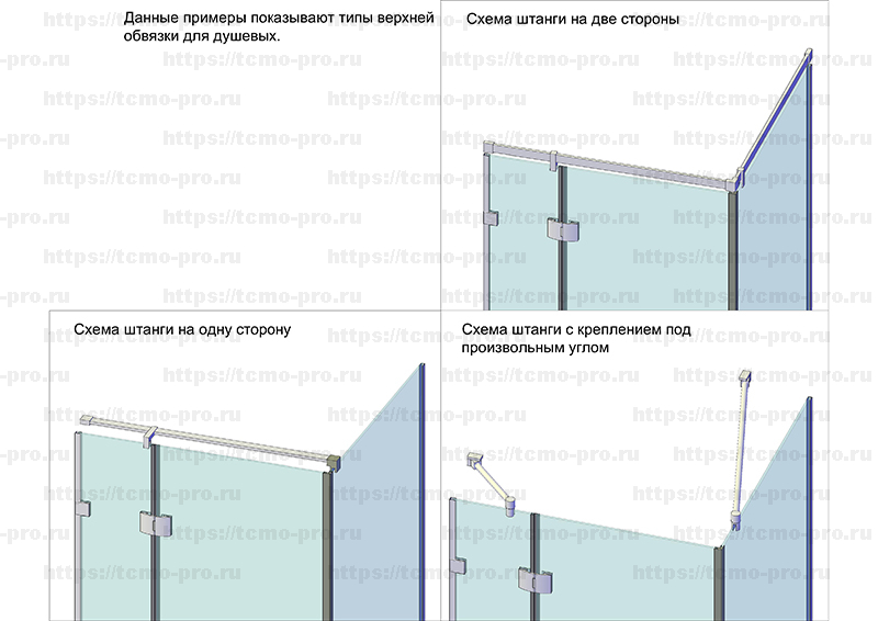 - Трубы (штанги верхней обвязки/треки) для душевых кабин