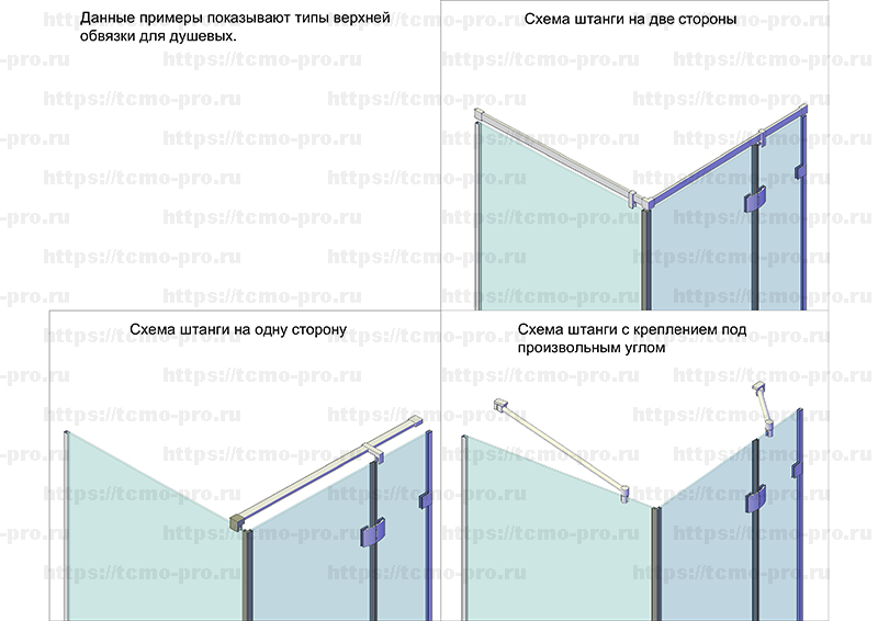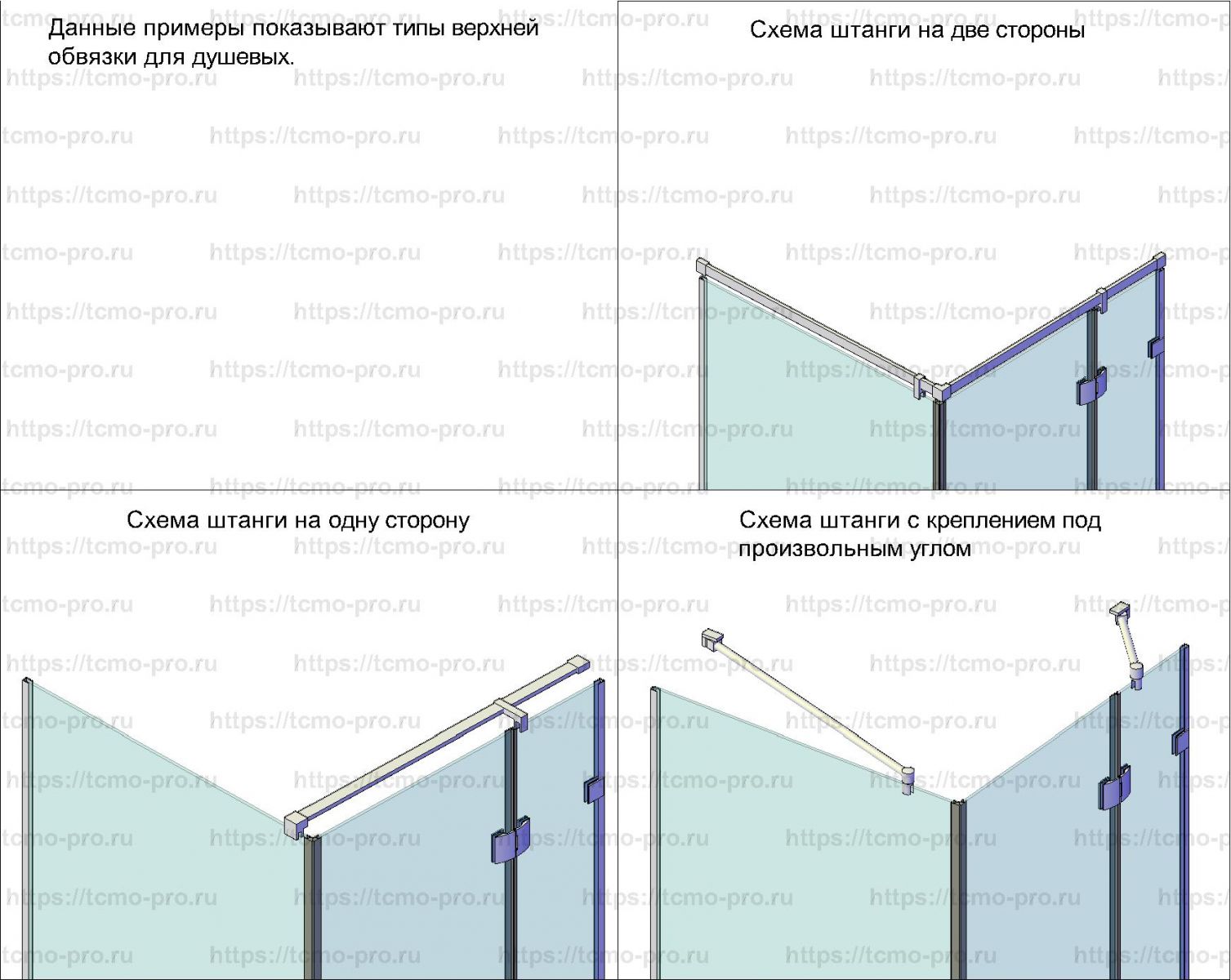 - Трубы (штанги верхней обвязки/треки) для душевых кабин