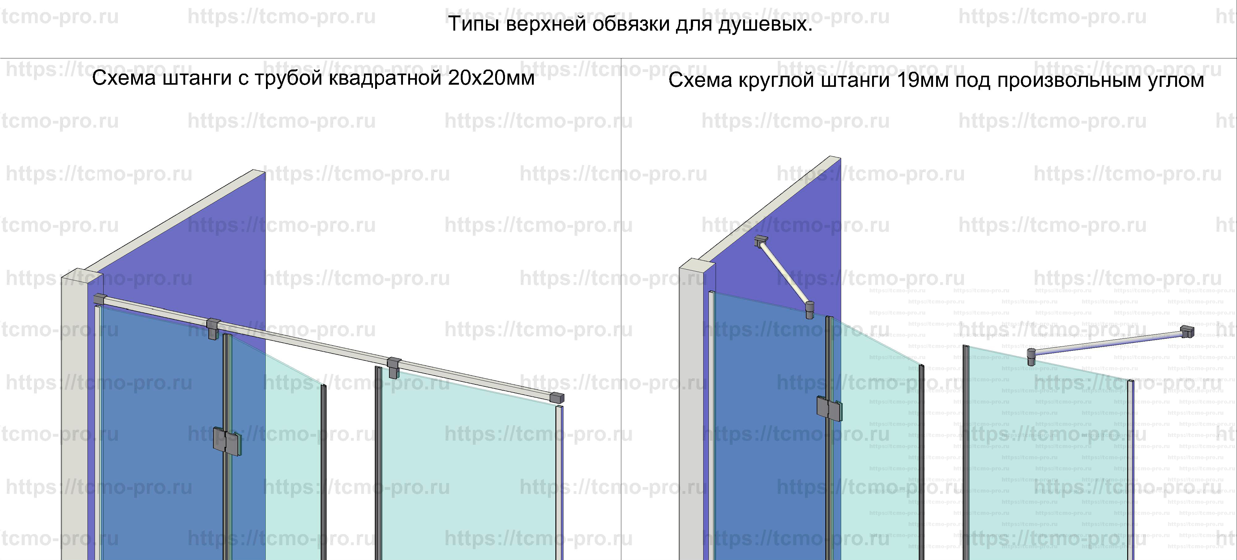 - Трубы (штанги верхней обвязки/треки) для душевых кабин