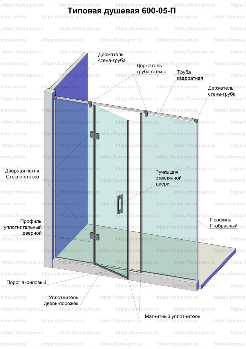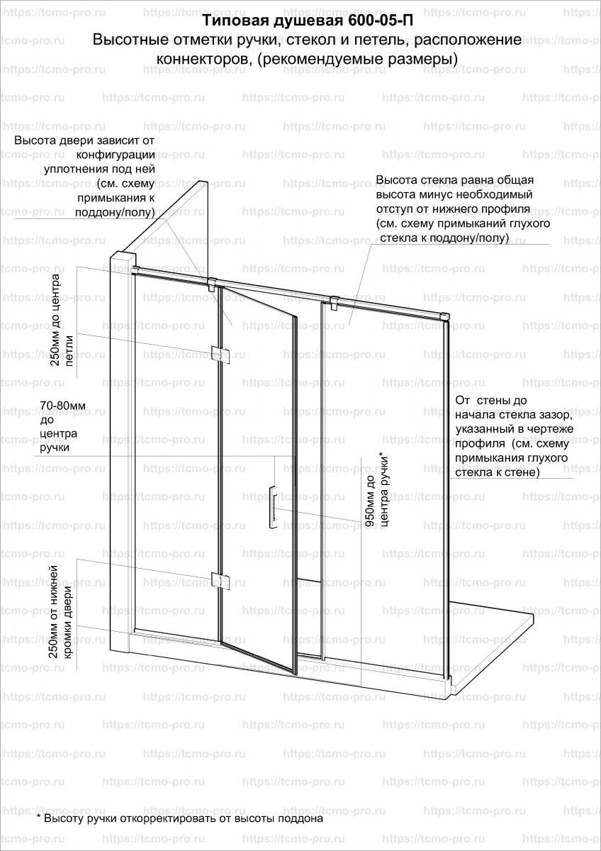 SN600-05-П Душевая стеклянная перегородка в проём ПРОФИЛЬ