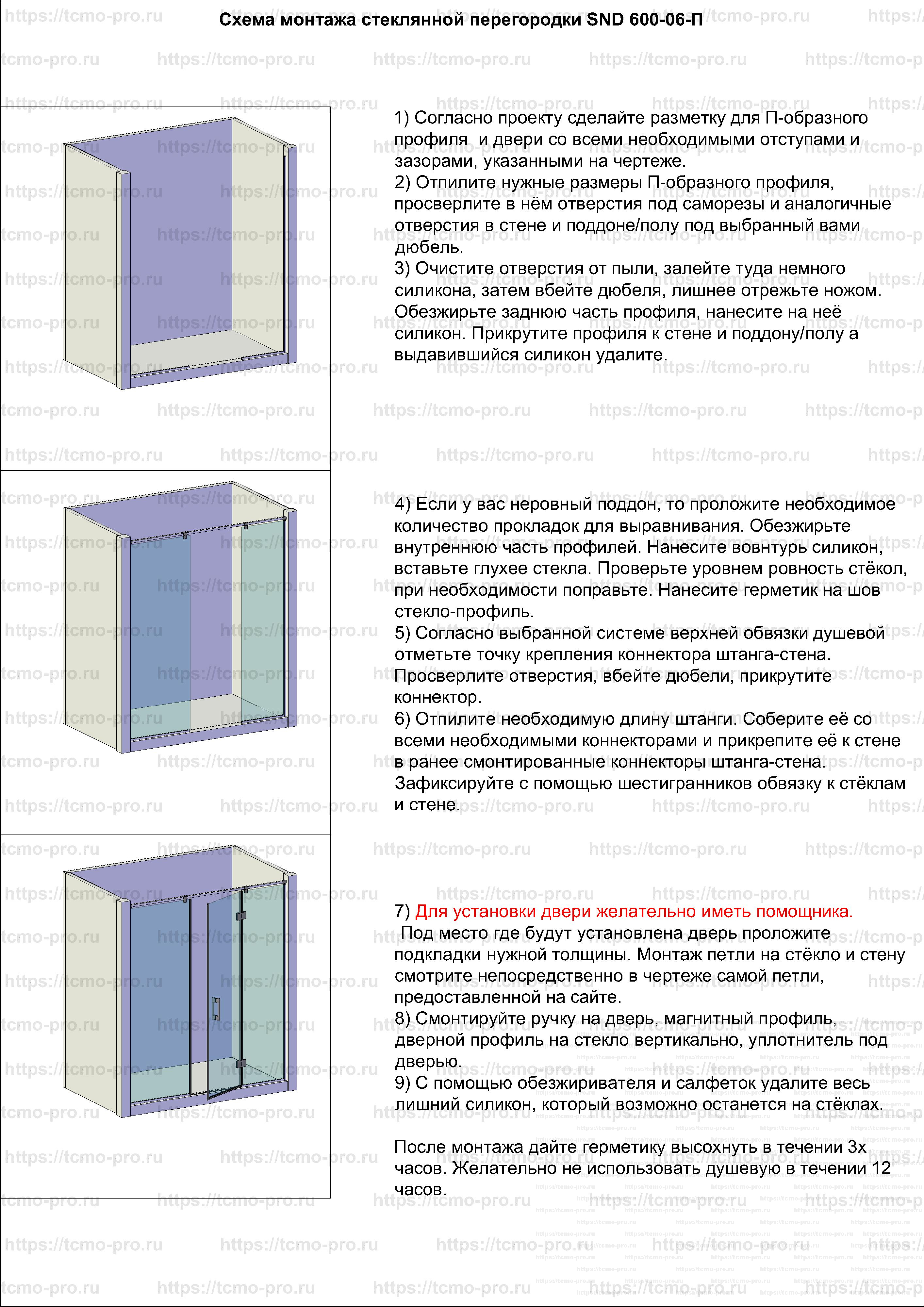 После монтажа дайте герметику высохнуть в течении 3х часов. Желательно не использовать душевую в течении 12 часов.