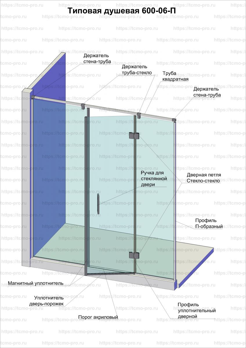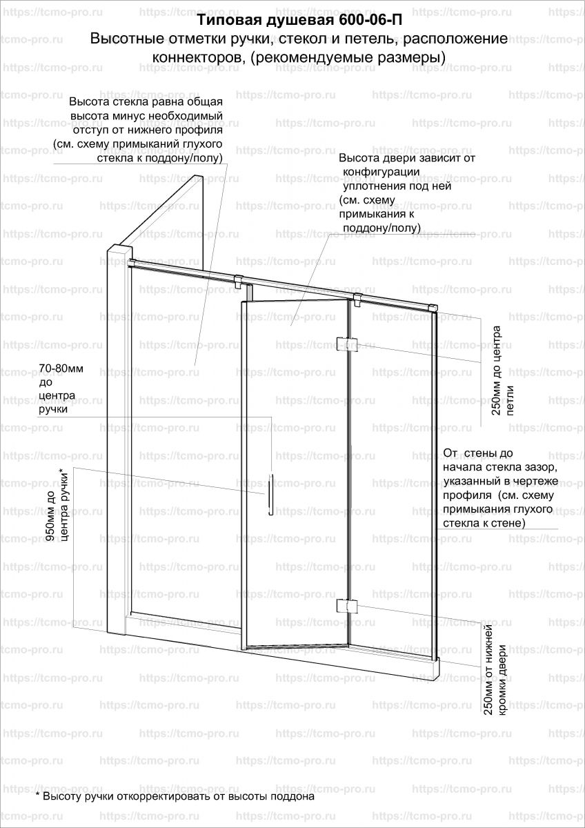 SN600-06-П Душевая стеклянная перегородка в проём ПРОФИЛЬ