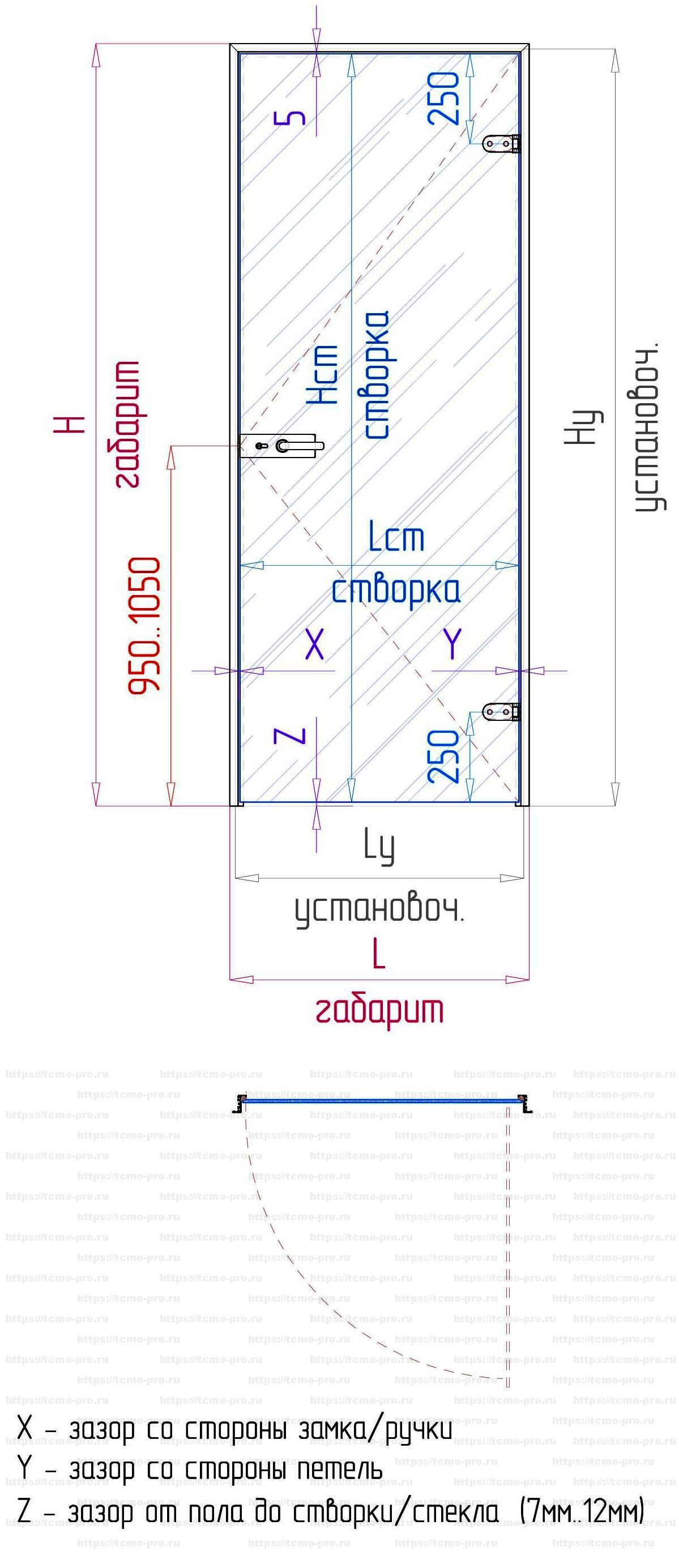 | Особенности | Внимание!!! Данный вариант двери может быть укомплектован другими петлями и замками на выбор покупателя. Цена зависит от выбора фурнитуры, а также толщины и цвета стекла. Полный расчет предоставляется по запросу. |
