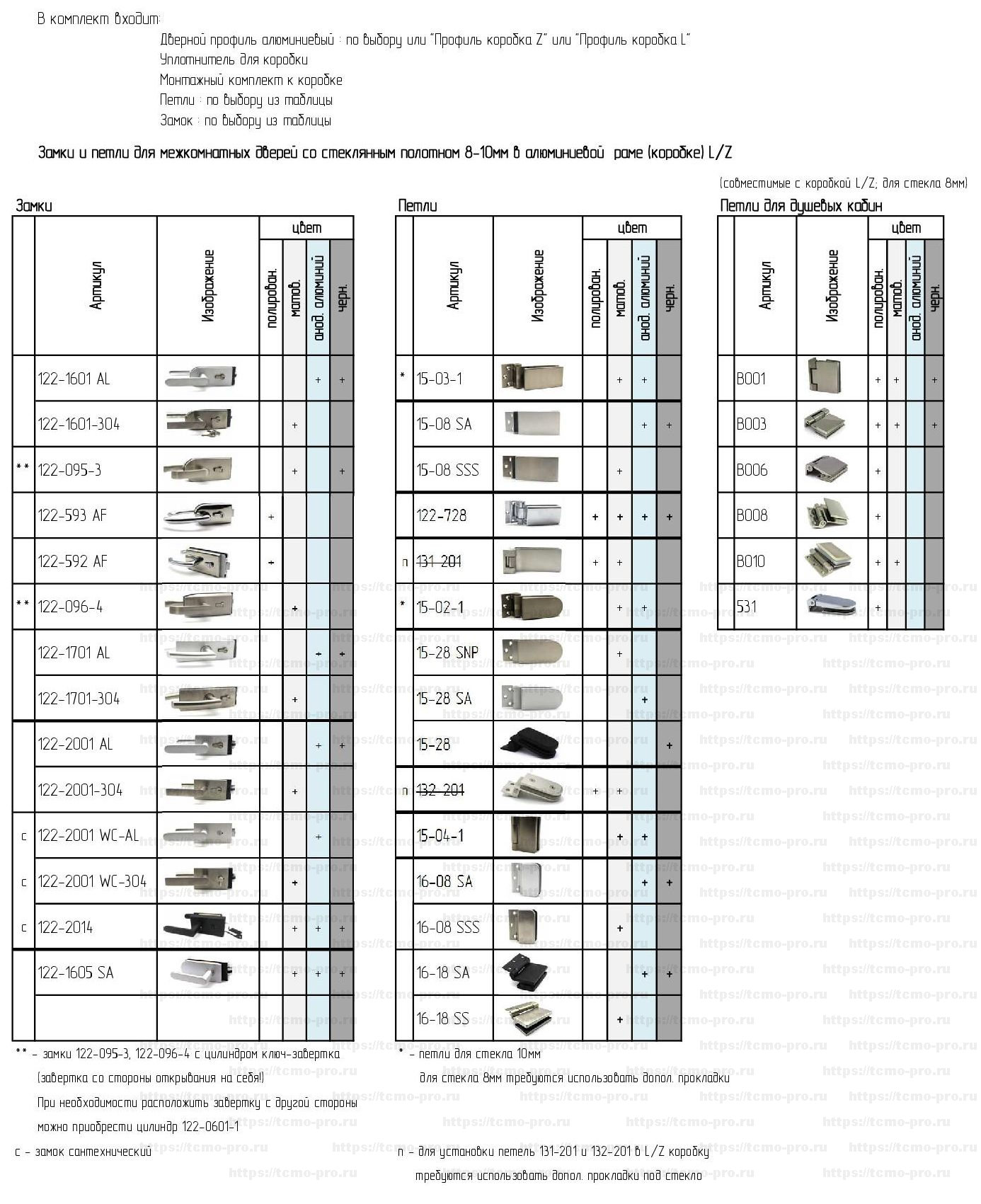 Варианты замков и петель |