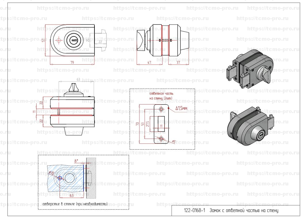 SND122-016B-1 Замок с ответной частью на стену ключ-вертушка