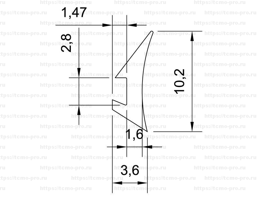 УС1633-10 Уплотнитель для опорного профиля под стекло 10мм